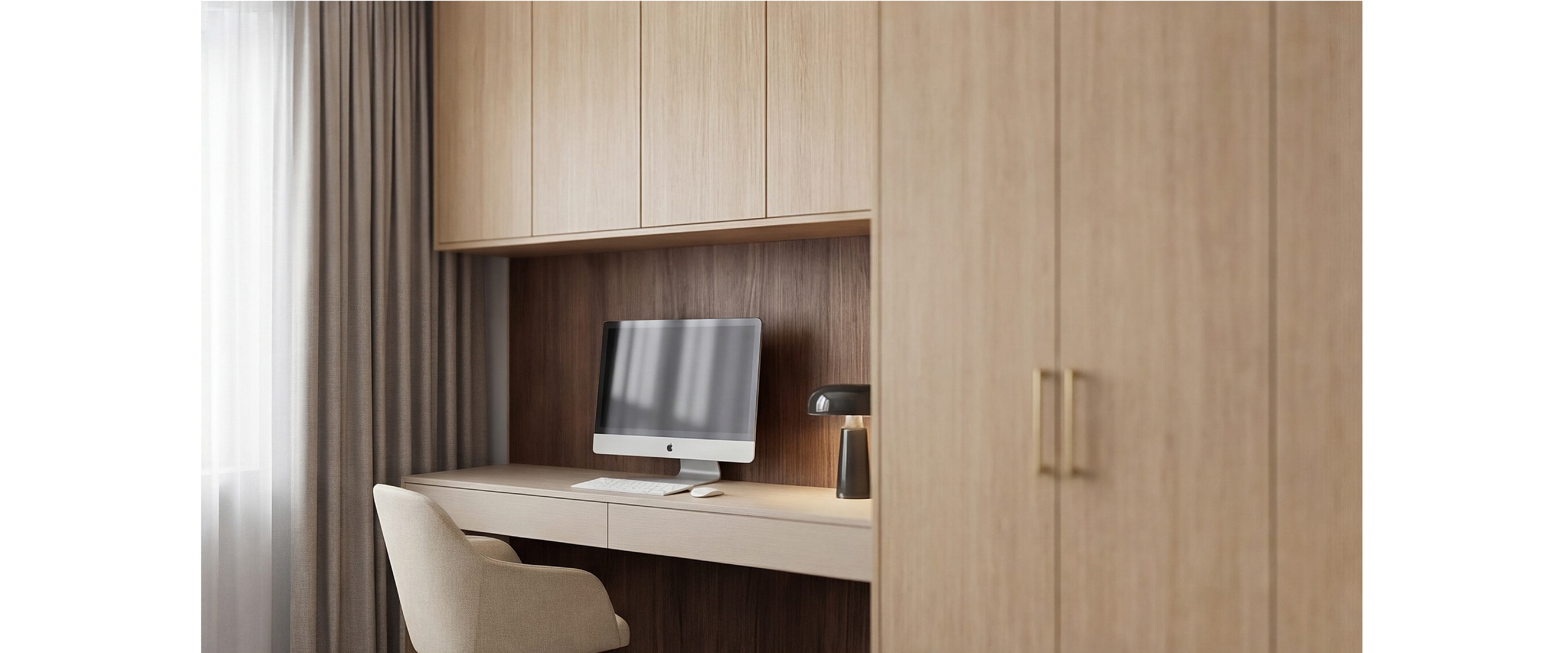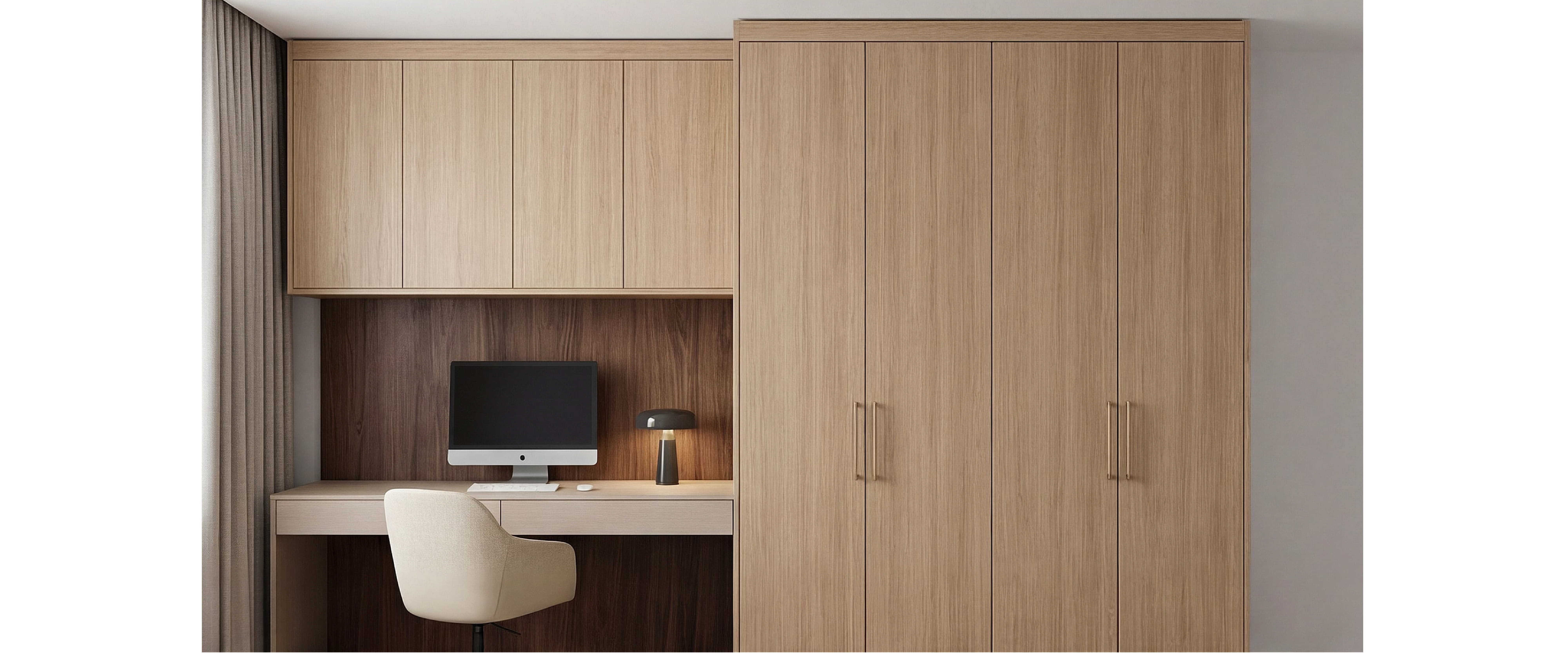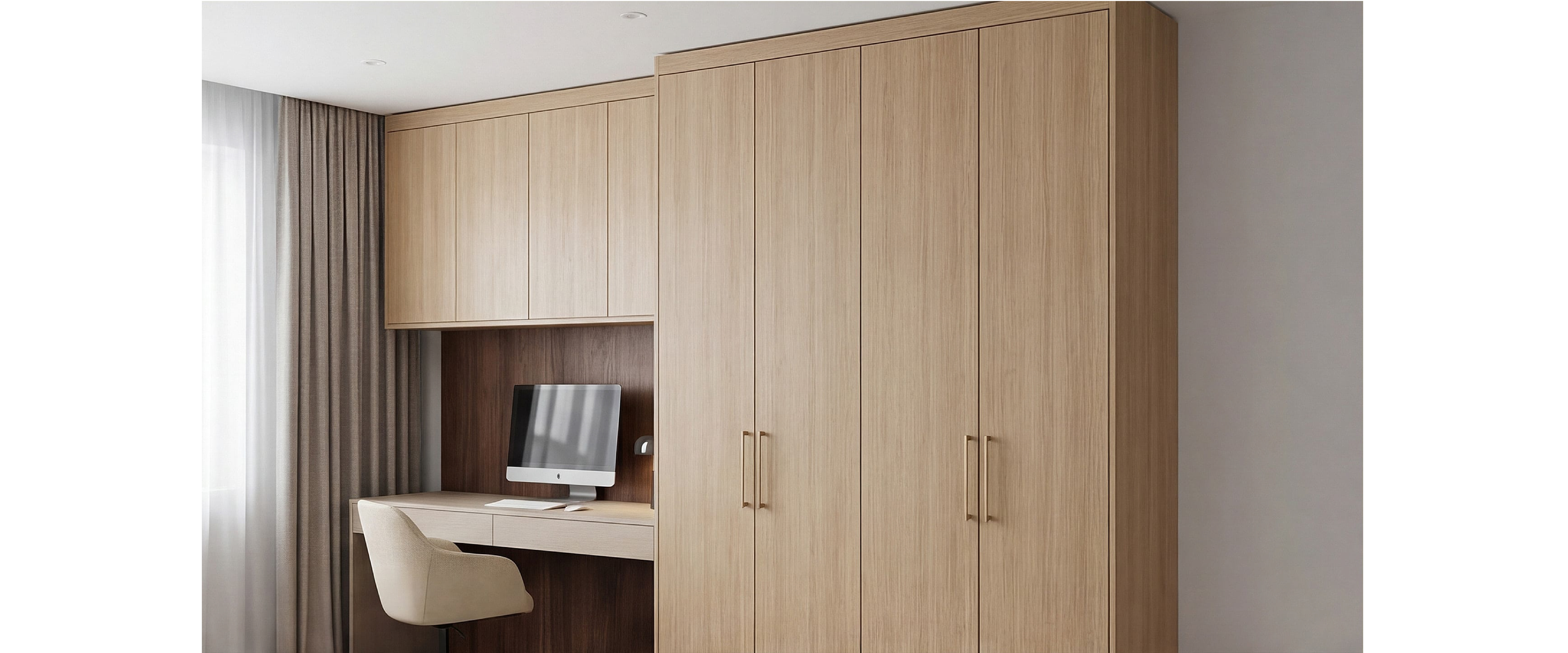 Шкаф-стенка из ЛДСП EGGER с рабочей нишей. Фурнитура Hettich.